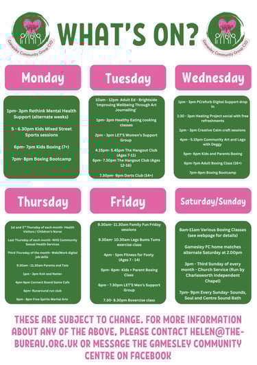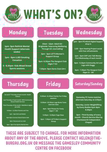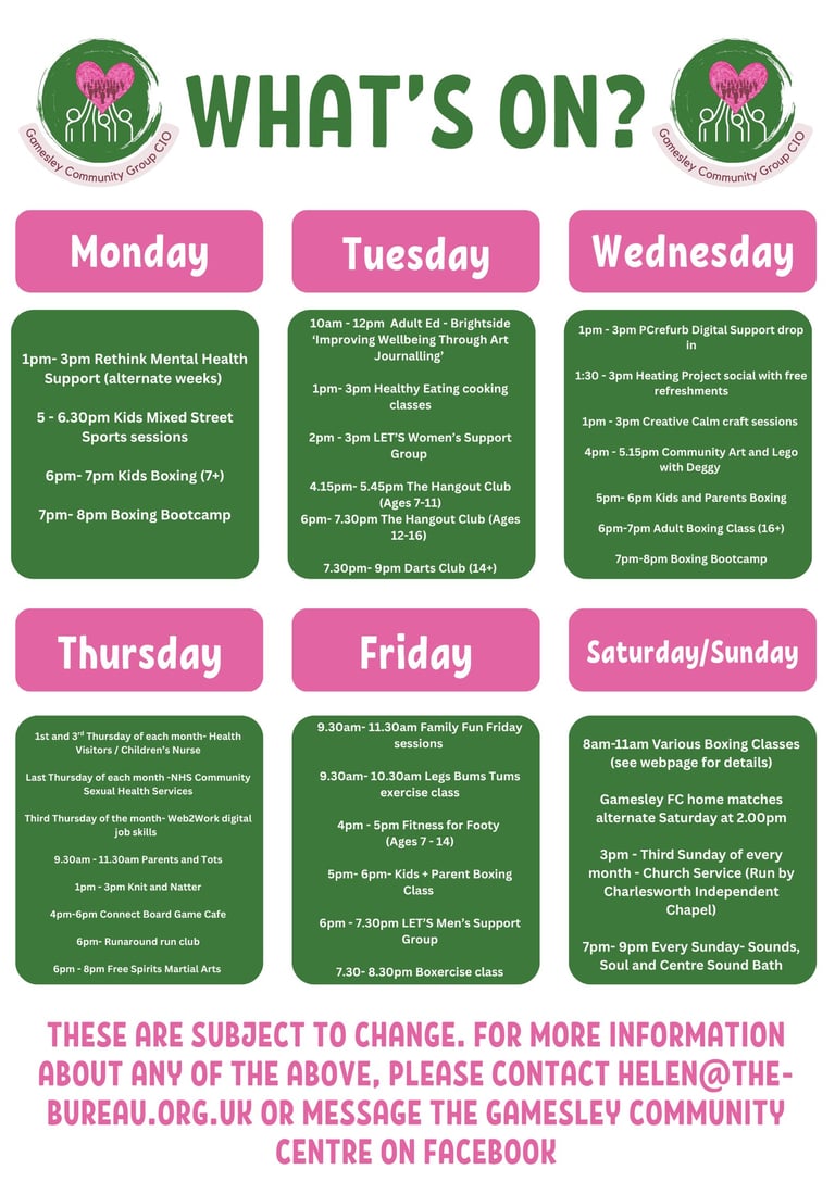 © 2025 - Gamesley Community Group CIO is a registered charity in England & Wales, number 1208809. Current contact details as above.