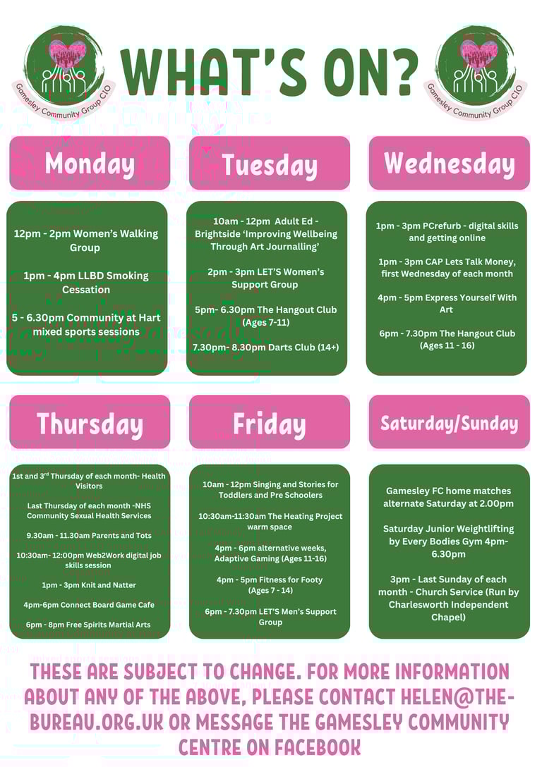 © 2025 - Gamesley Community Group CIO is a registered charity in England & Wales, number 1208809. Current contact details as above.